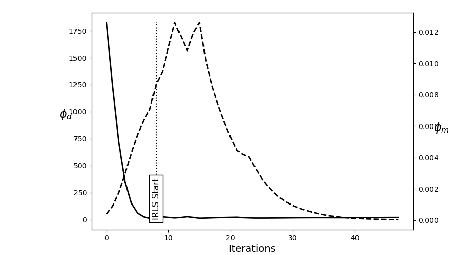 # Reach target misfit for L2 solution, then use IRLS until model stops changing.