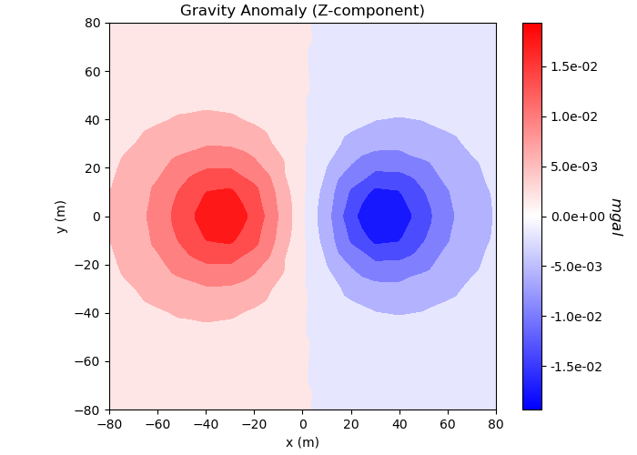 # a list. Here we simulate only the vertical component of gravity anomaly.