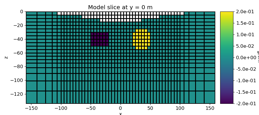 Here, we create starting and/or reference models for the inversion as well as the mapping from the model space to the active cells. Starting and reference models can be a constant background value or contain a-priori structures.