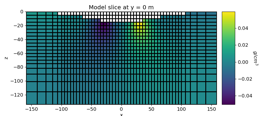 Here we invert gravity anomaly data to recover a density contrast model. We formulate the inverse problem as a least-squares optimization problem. For this tutorial, we focus on the following:
