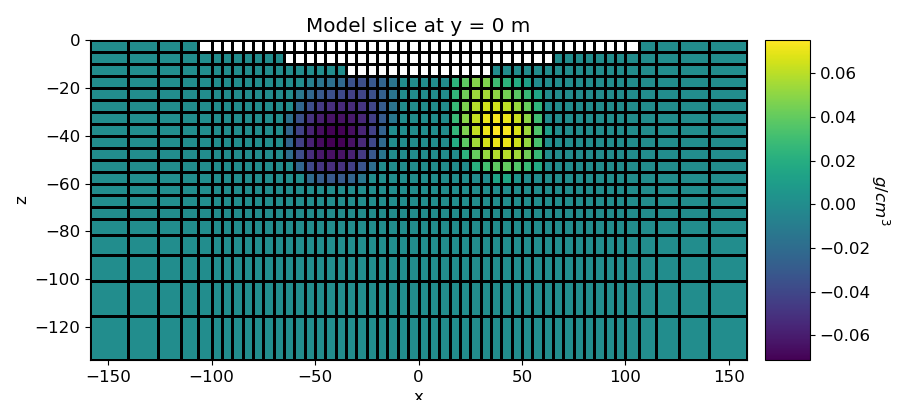 Although we consider gravity anomaly data in this tutorial, the same approach can be used to invert gradiometry and other types of geophysical data.