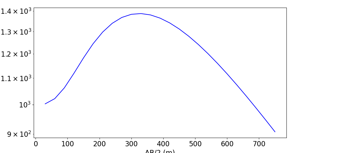 For this tutorial, we will simulate sounding data over a layered Earth using a Wenner array. The end product is a sounding curve which tells us how the electrical resistivity changes with depth.